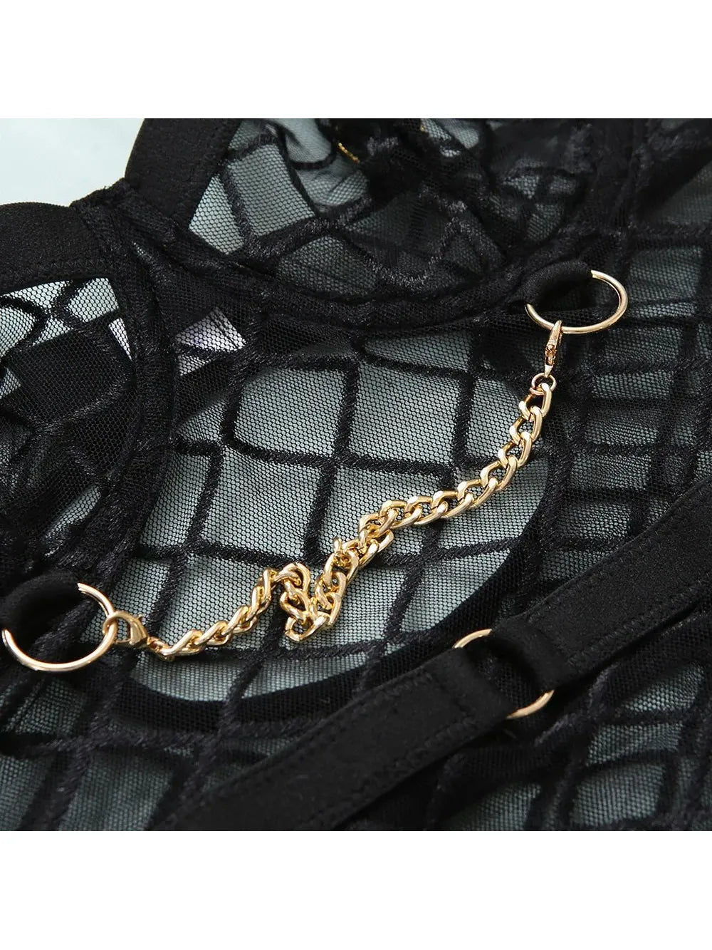 Unleash your inner power with the Aria Bodysuit, a daring yet elegant piece designed to captivate. With its striking geometric mesh, gold chain accents, and figure-hugging silhouette, this bodysuit is the perfect blend of edgy sophistication and timeless allure. Whether for a special occasion or an everyday confidence boost, Aria is the ultimate statement piece.