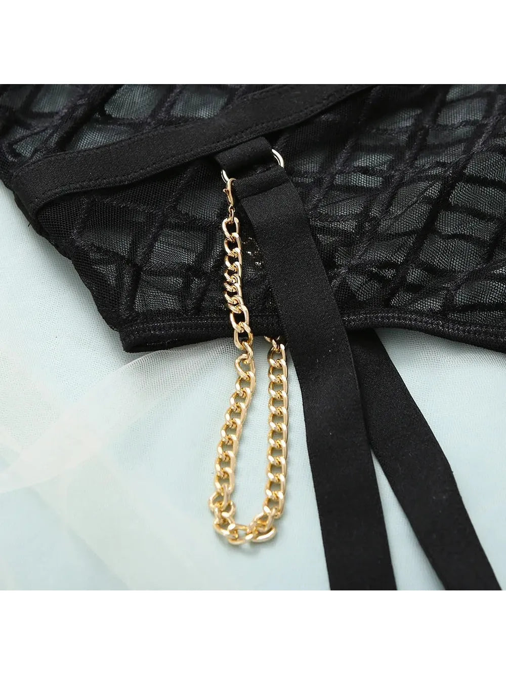 - Seductive & Unique Design – Bold fishnet pattern with gold chain details for an eye-catching look.